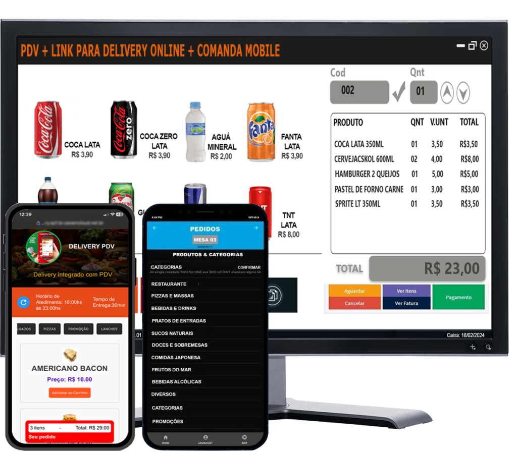 O Sistema de Gestão PDV é a solução completa para controlar suas vendas, caixa estoque, vendas balcão, vendas por mesas, comandas além de possuir comanda eletrônica para o garçom tirar pedidos em mesas de clientes, com envio do pedido para cozinha. Agilize já o atendimento do seu estabelecimento com segurança e controle total dos seu gastos e lucros.