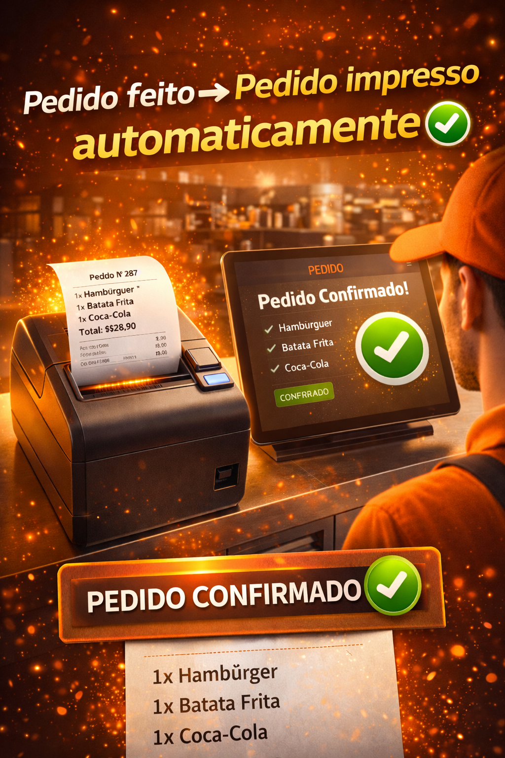 Sistema com pedidos automáticos, impressão instantânea e controle total.